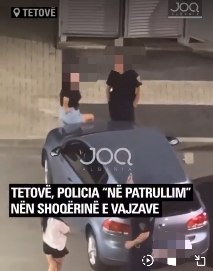 ,,Вечерва во Тетово, двајца полицајци беа снимени како влегуваат во автомобили со две девојки и се одвезуваат во непознат правец. Снимката не покажува никаква службена акција или мешање, туку ситуацијата изгледа како приватен состанок”, пишува JOQ.