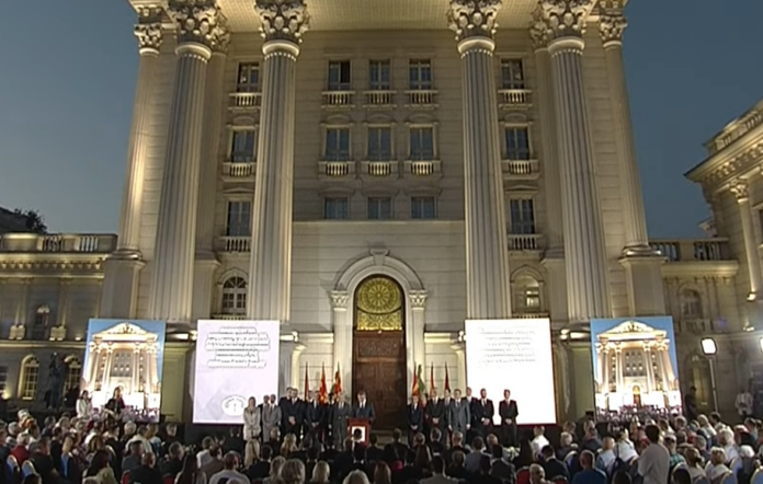 – Година во која секој од нас даде дел од себе за да го изгради новиот пат. Свесни сме за огромните очекувања и за досега многупати изневерените надежи. Се трудевме да изградиме стабилизација која ќе поттикне развој, консолидација која ќе донесе раст. Затоа денес гледаме напред со увереност и срце полно надеж. Времето на секој еден од вас допрва доаѓа! Време кога ќе ги оживееме нашите соништа, кога заедничка Македонија на Македонците, Албанците, Турците, Ромите, Србите, Власите, Бошњаците – ќе се издигне посилна и посветла од кога било. Време кога твојот глас, твојот труд и твојата иднина ќе бидат нераскинлив дел од нашата политичка и животна приказна – нагласи тој.