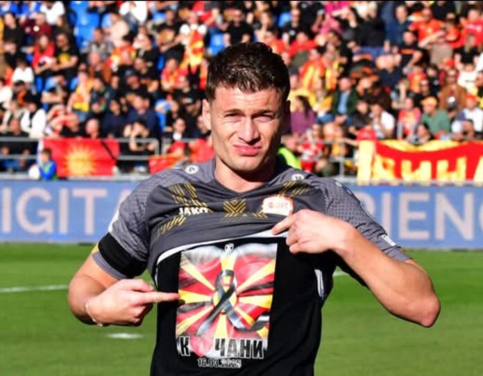 Во победата на Македонија над Лихтенштајн со 3:0 посветена на жртвите од Кочани македонскиот десен бек Езѓан Алиоски носеше специјална маица.