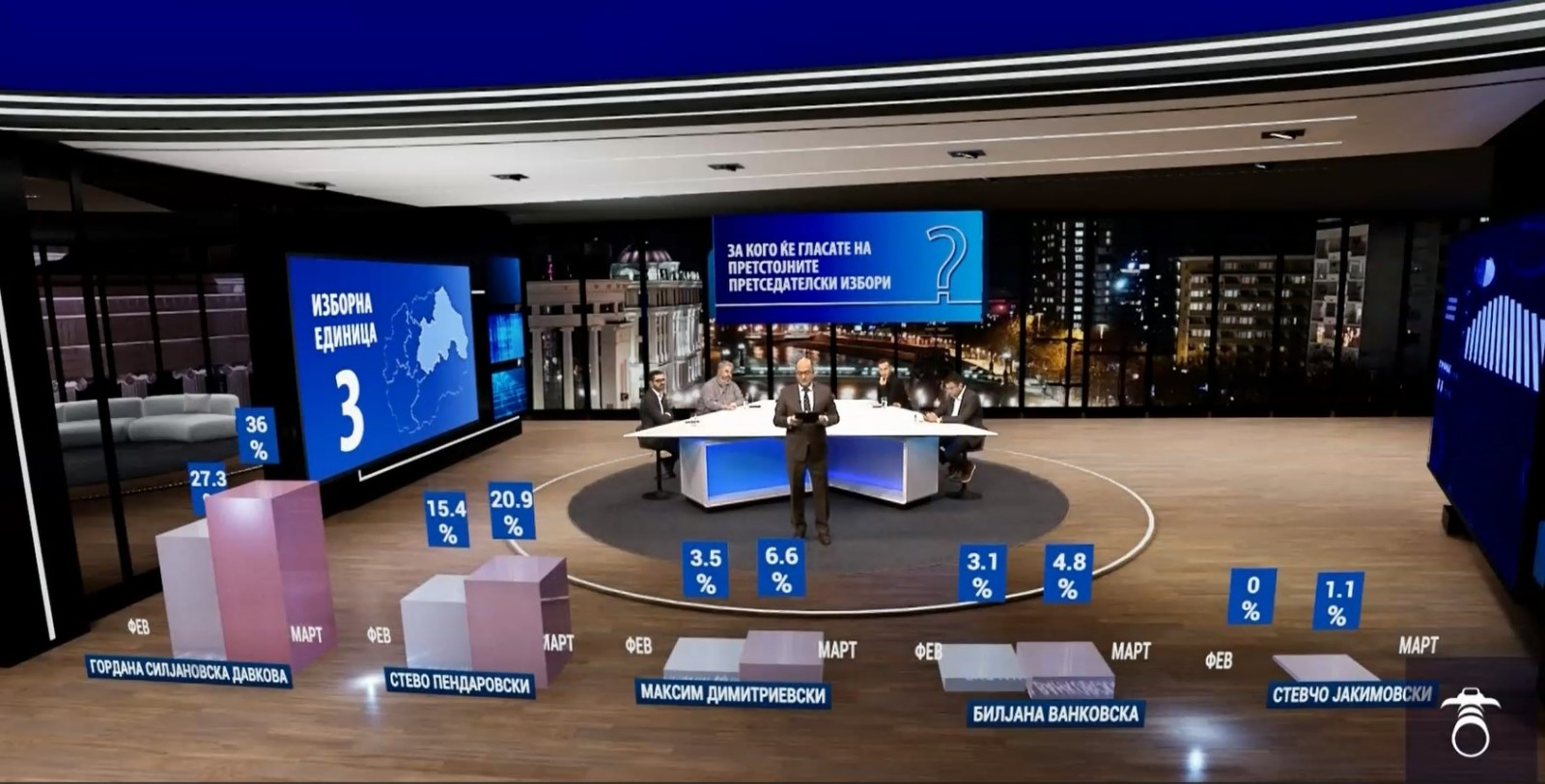 Анкетата на ИПИС за претседателските кандидати покажува дека Гордана Силјановска Силјановска како кандидат на ВМРО-ДПМНЕ во изборните единици 3 и 4 има речиси дупло поголемо водство пред кандидатот Пендаровски