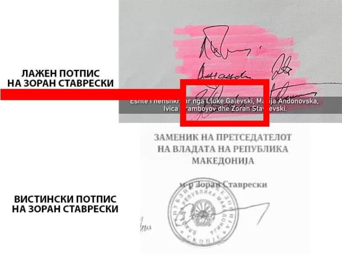 Според потписот од документот кој го цитира Илиевски јасно се гледа дека графолошкиот изглед на потписот кој го објавуваат СДСМ и Салиу е различен од потписот на Зоран Ставревски од официјален документ.