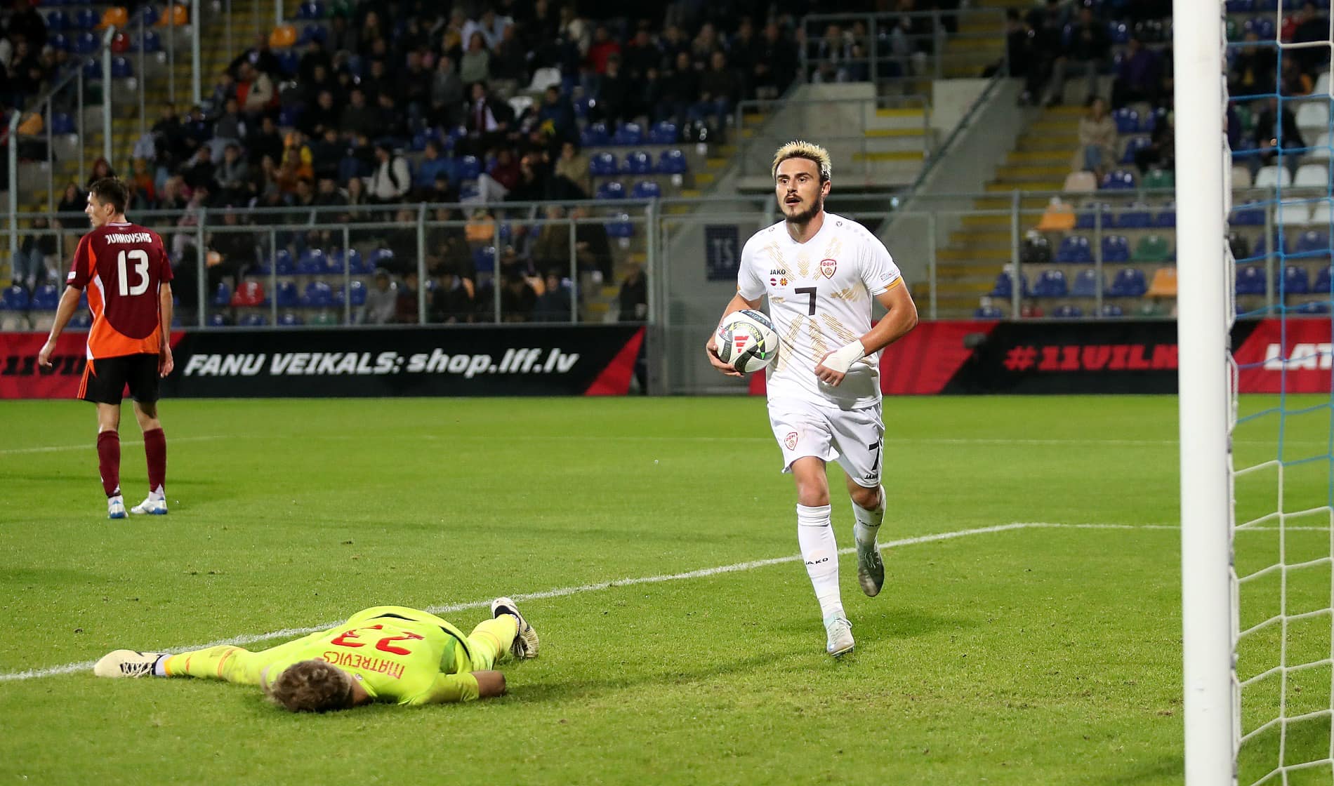 Четвртиот триумф во исто толку меѓусебни дуели со Летонците го најави Јани Атанасов во 35. минута, зголеми Лирим Ќамили во 70. минута, а точка на резултатот стави Елиф Елмас со „бомбата“ во третата минута од судиското продолжение со својот 16. погодок во 81. настап во црвено-жолтиот дрес.