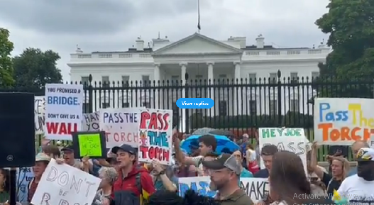 Пред Белата куќа се одржа мирен протест на кој беше побарано претседателот Џо Бајден да се повлече од кандидатурата за уште еден мандат, јави NBCNews.
