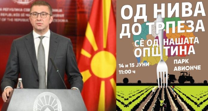 Претседателот на Владата на Република Македонија Христијан Мицкоски ќе присуствува денес на претставувањето на традиционалната македонска храна и на можностите и убавините на македонскиот селски туризам, кое под мотото „Од нива до трпеза – сè од нашата општина“ ќе се одржи со почеток во 11 часот во паркот „Авионче“ во општина Аеродром. Овој настан го организира здружението „Наша традиција, наша иднина“ со поддршка од Министерството за земјоделство, шумарство и водостопанство. На настанот ќе се обрати и министерот за земјоделство, шумарство и водостопанство Цветан Трипуновски.