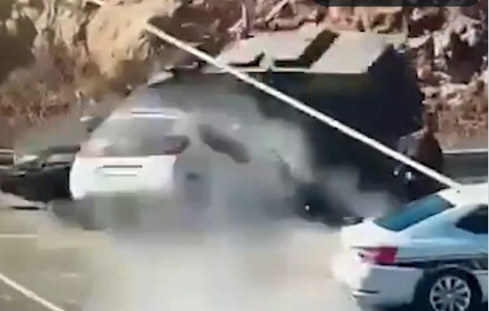 На снимката од безбедносните камери се гледа како автомобилот со голема брзина се движи кон оклопно возило и полициско патролно возило, а наоколу стоеле неколку полицајци.