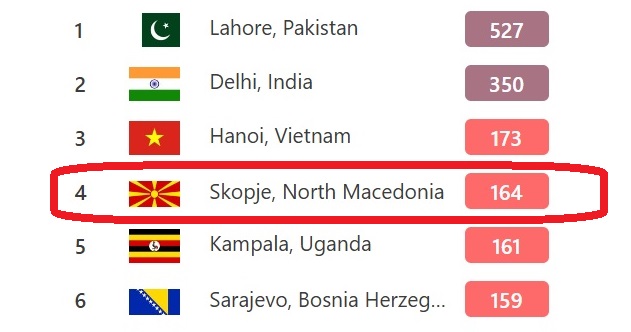 Пред главниот град на Македонија се Лахоре во Пакистан, Делхи, Индија и Ханој, Виетнам, покажуваат податоците на платформата Ај-кју-ер.