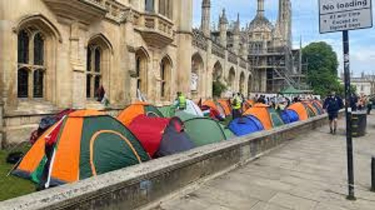 Студентите на универзитетите во Оксфорд и Кембриџ поставија шатори во универзитетските кампуси, во знак на протест против војната во Газа, пренесе агенцијата ДПА.