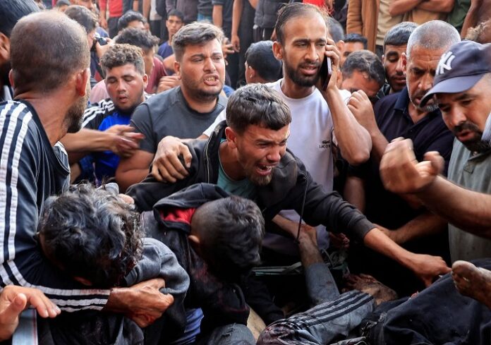 Видео објавено на социјалните медиуми покажа околу десетина осакатени тела како лежат на улица во Кан Јунис во јужниот дел на Појасот Газа.