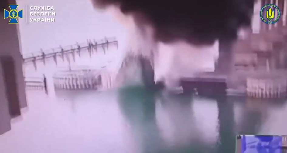 Украинската безбедносна служба (СБУ) објави дека го оштетила Кримскиот мост со подводни експлозиви. Украинското разузнавање, исто така, сподели видео на кое се гледа експлозијата.