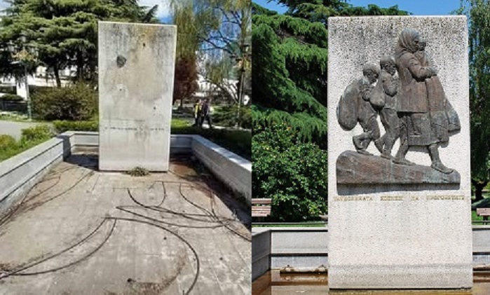 На 9 април споменикот кој се наоѓа во паркот Жена борец во центарот на Скопје беше сосема уништен, беше откорнат бакарниот рељеф, мотив на мајка со три деца и украдени буквите од натписот „Татковината копнеж на прогонетите“.