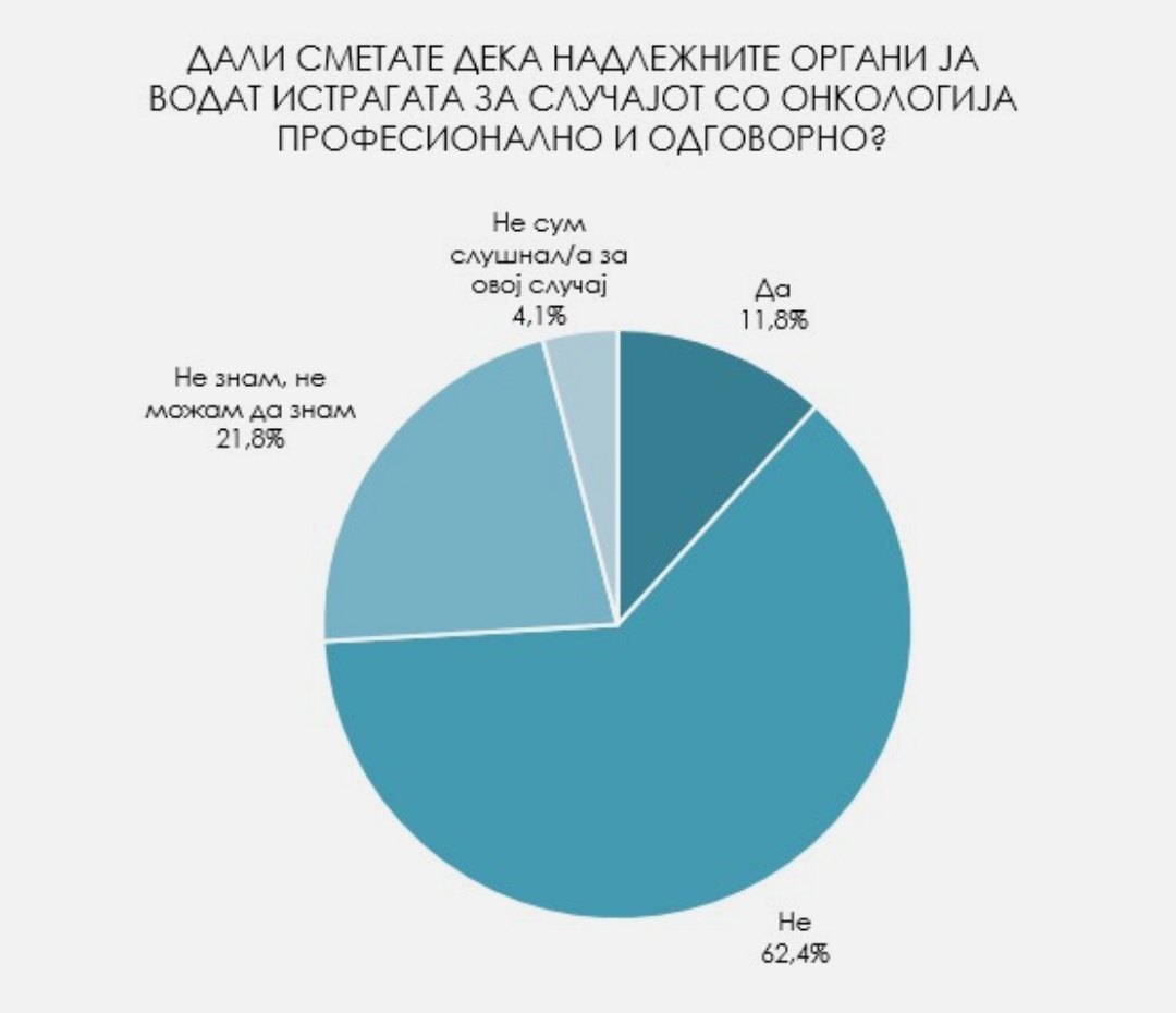 Над 60% од испитаниците сметаат дека надлежните органи не ја водат професионално и одговорно истрагата за случајот во Клиниката за онкологија.