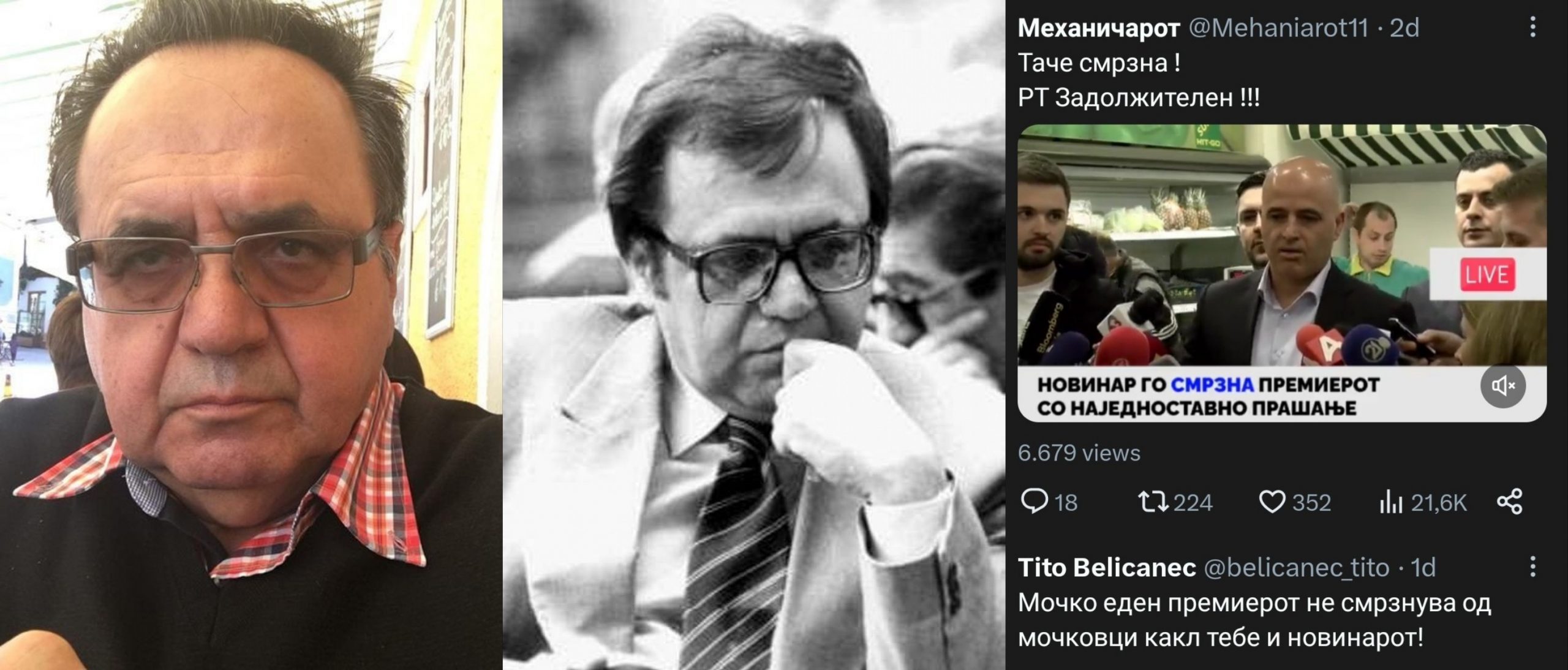 Новинарот за кој Беличанец вели дека е мочко е Матеја Петровски кој на Ковачевски му постави прашање зошто оди во дуќани а не оди на Онкологија или во училишта каде нема ученици.