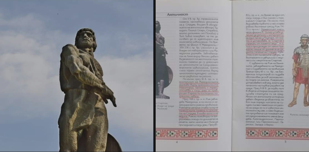 За бришењето на македонското минато, најсериозен камен на сопнување за бугарските националисти е несомнено античката историја на регионот, самото негово име Македонија и неговата поврзаност со светски познати личности како Филип Втори и Александар Македонски. За да го реши проблемот, Бугарија измисли сосема нова наука – тракологија и ја постави пред светот преку Одделот за државна безбедност за културно-историско разузнавање. Тракија и Тракијците се алатката што ќе ги замени античките Македонци и нивната голема држава во историските книги, во медиумите, насекаде. Така, големиот Александар мора да биде заменет со уште една важна историска личност – улогата овде му е доделена на Спартак. За тоталитарниот режим беше критично важно на луѓето од Пиринска Македонија да им се всади оваа измислена историја, затоа што ја одзема основата на македонскиот идентитет – самото име на државата, нејзиното античко име Македонија. Доколку се елиминира, нема пречка да се пласираат какви било фалсификати. Но, замената во книгите не е доволна. Ни треба нешто од секојдневието, од реалноста. Споменикот е таква алатка. Можеби нема да ја читате книгата или весникот, може да ги фрлите, но споменикот е таму и не мрда. Тоа е неизбежно и тивко сугерира невистина”, стои во објаснувањето.