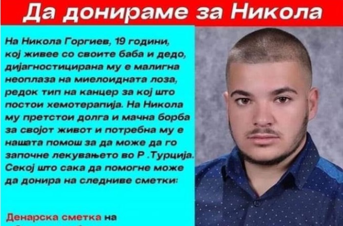 Отворени се донациски броеви на А1 и Телеком за лекувањето на Никола Ѓорѓиев кој боледува од редок вид на рак на коски и чие што лекување треба да биде во Турција.