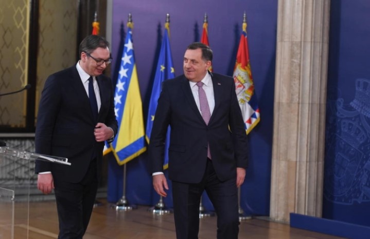Како што рече на прес конференцијата со Вучиќ, Додик го запознал со неговиот поглед на ситуацијата и односите како во Босна и Херцеговина, така и во однос на Република Српска и борбата и обидите на Република Српска да ги зачува своите права и обврски од Дејтонскиот договор и да тој ентитет „сериозно“ размислува за отцепување доколку не се почитуваат неговите уставни права.