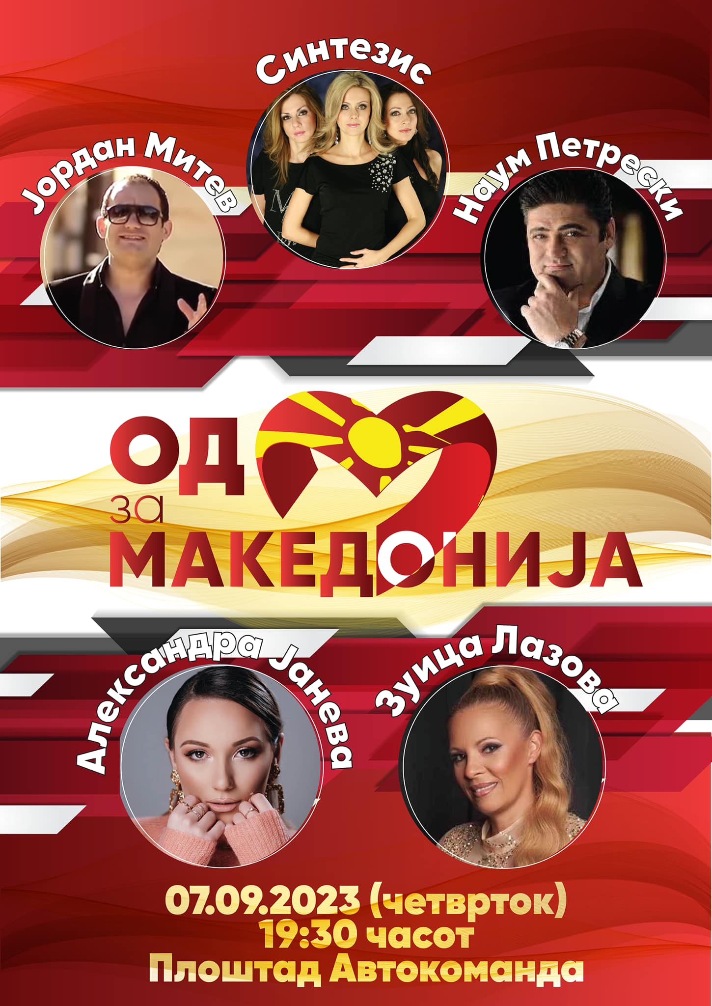 Ќе учествуваат естрадните уметници Јордан Митев, Александра Јанева, Наум Петрески, Зуица Лазова и групата Синтезис, а на настанот ќе биде изведен и уметнички перформанс со наслов “Во слава на минатото” од македонски актери, фолклорниот ансамбл Седенка и вокално инструменталната група Аманет.
