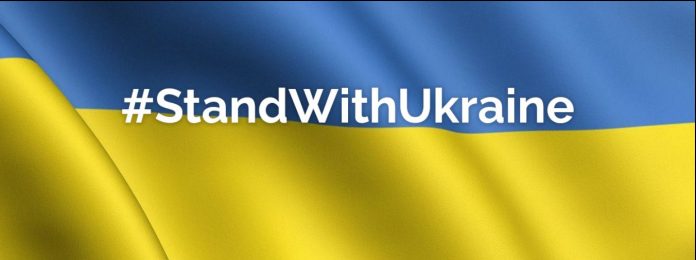 Голем број амбасади во Пекинг поставија табли со аплицирано знаме на Украина и натписи на кинески и на англиски јазик со хаштаг #StandWithUkraine