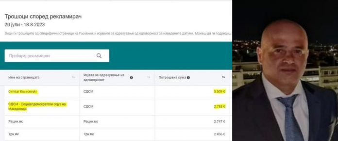 Извештајот на компанијата МЕТА покажува дека од 20 јули до 18 август Ковачевски и неговата партија потрошиле фантастични речиси 8300 евра.