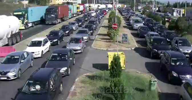 Според последните информации, огромни колони има на граничниот премин и шесте ленти за возила не се дозволни за да се забрза протокот на сообраќај, јавува Макфакс.