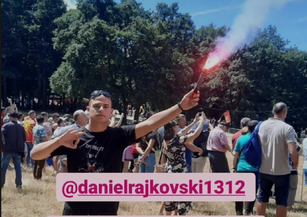 Организации и граѓани на социјалните мрежи информираат дека вчера за време на прославата на Илинден на Мечкин Камен е уапсено лице кое запалило факел што го користат навивачите на спортски натпревари.
