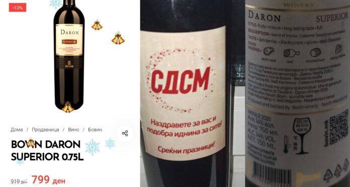 Виното на кое од СДСМ му ја смениле етикетата е од марката Дарон на винаријата Бовин.