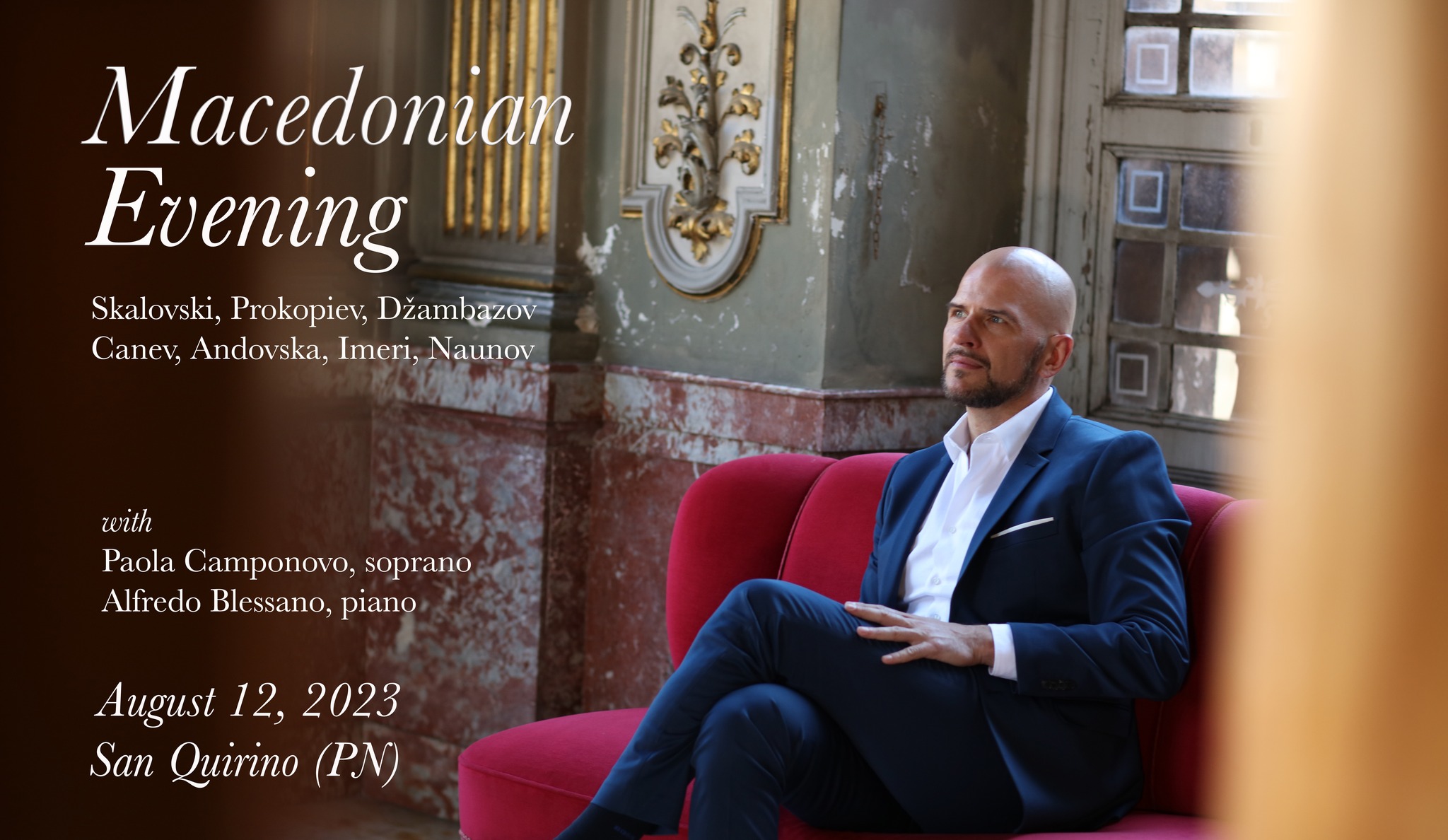 Скаловски, Прокопиев, Џамбазов, Цанев, Андовска, Имери и Наунов се македонските автори чиишто дела ќе изведе Нацоски на концертот во Сан Квирино, стотина километри од Трст, на кој ќе го придружуваат сопранот Паола Кампоново и пијанистот Алфредо Блесано.