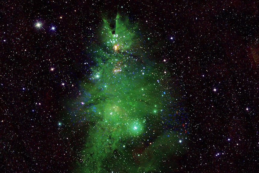 Оваа фотографија позната и како „Кластерот на Божиќното дрво“, покажува облик на космичка елка со сјај на ѕвездени светла. Се работи за кластер од млади ѕвезди – со возраст од околу еден и пет милиони години кои се во нашиот Млечен Пат, оддалечен околу 2.500 светлосни години од Земјата.