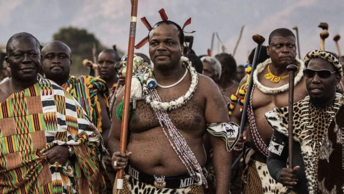 На фотографијата е кралот на Свазиленд, кој владее со земја која што во исто време како кај нас го смени името на државата во Есватини.