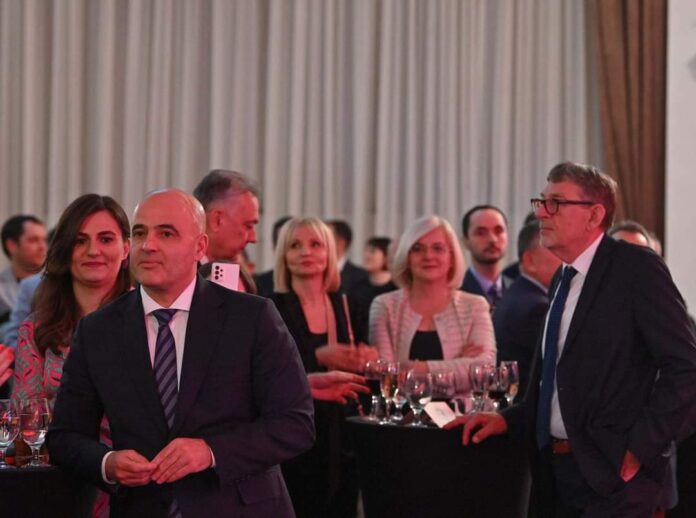 Од фотографиите се гледа дека Ковачевски и Зајкова на прославата на СДСМ во Александар Палас стојат блиску, но на фотографиите премиерот и врти грб на својата коалиција партнерка.