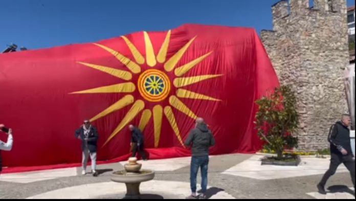 Во центарот на Охрид денеска на 27 април е истакнато знаме со сонцето од Кутлеш во знак на поддршка за македонските уставобранители кои во процес на политички реваншизам се осудени за терористичко загрозување на уставниот поредок на Република Македонија.