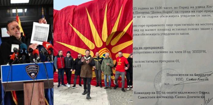 Полицаецот Самет Амети е потпишан како подносител на пријавата од СВР Охрид кон охриѓанецот Александар Ѓурчев за истакнувањето на знаме со сонцето од Кутлеш.