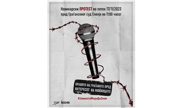 Здружението на новинари на Македонија и Самостојниот синдикат на новинари и медиумски работници најавуваат протест пред Граѓанскиот суд во Скопје утре, 17 ноември 2023, во 11 часот.