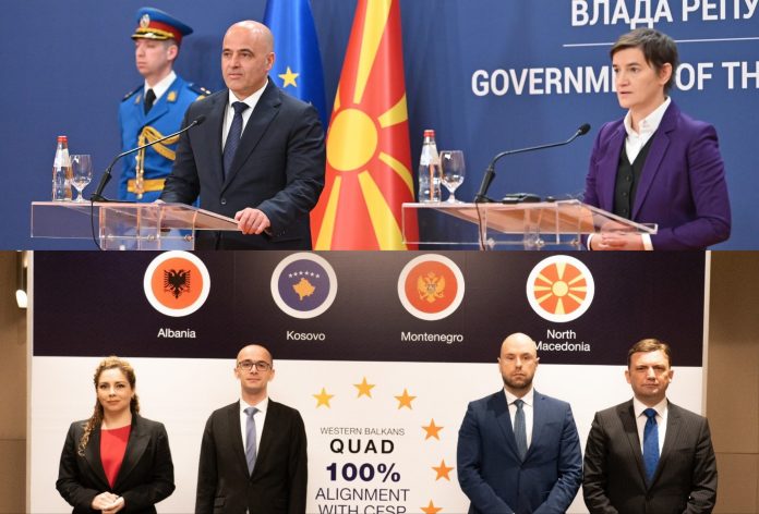 Во едниот табор е министерот за надворешни работи Бујар Османи кој ја потпиша безбедносната и дипломатска иницијатива КВАД составена од Албанија, Косово, Црна Гора и Македонија а без Србија за која сè уште нема опипливи резултати за целосно следење на европската заедничка надворешна и безбедносна политика.